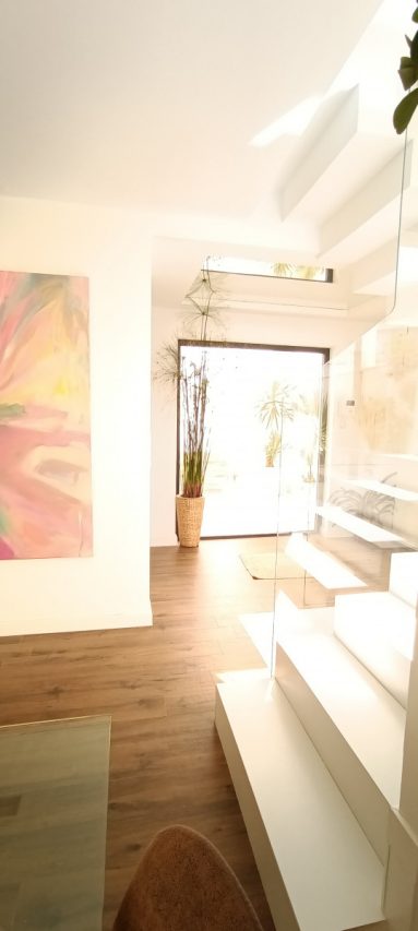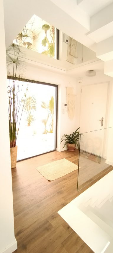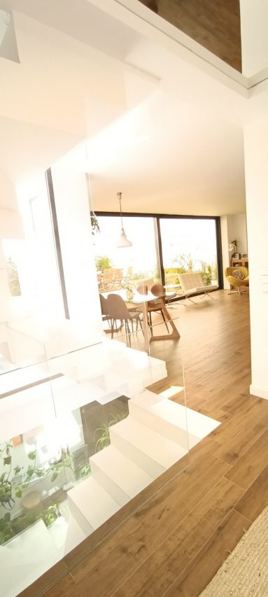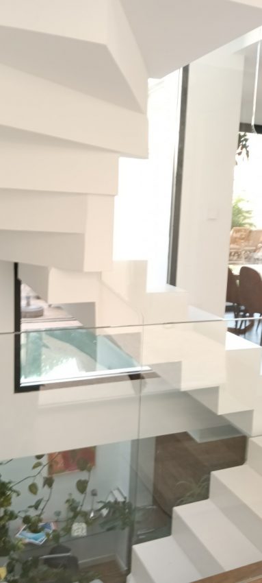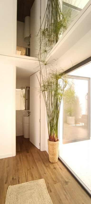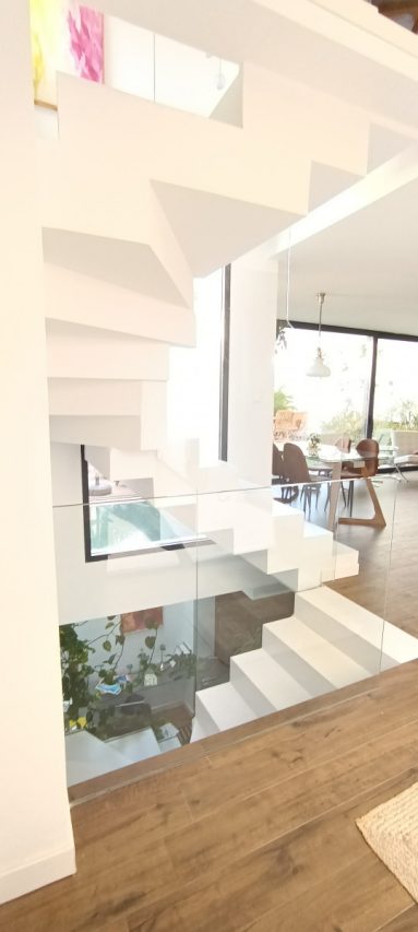 Se trata de una vivienda donde los espacios están pensados para ser diáfanos y versátiles, disminuyendo pasillos y creando recorridos diversos conectando estancias de diferentes modos. La vivienda está pensada para recibir la luz del sol a partir de diversos patios que generan un ambiente muy confortable en estaciones frías y generar frescor y verdor y las estaciones más cálidas, recibe luz prácticamente desde las cuatro orientaciones y la edificación queda ubicada en los patios que la naturaleza enmarca y llena de vida la vivienda.